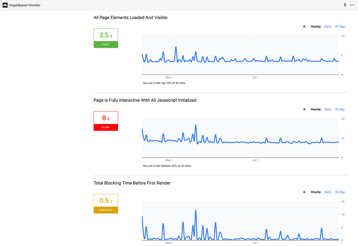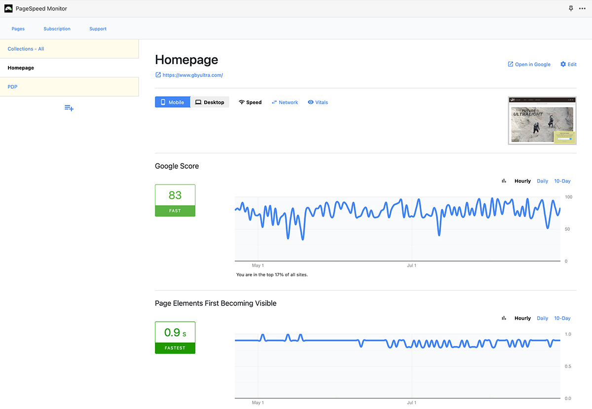 Monitor your Shopify theme page speed over time from Google PageSpeed Insights.