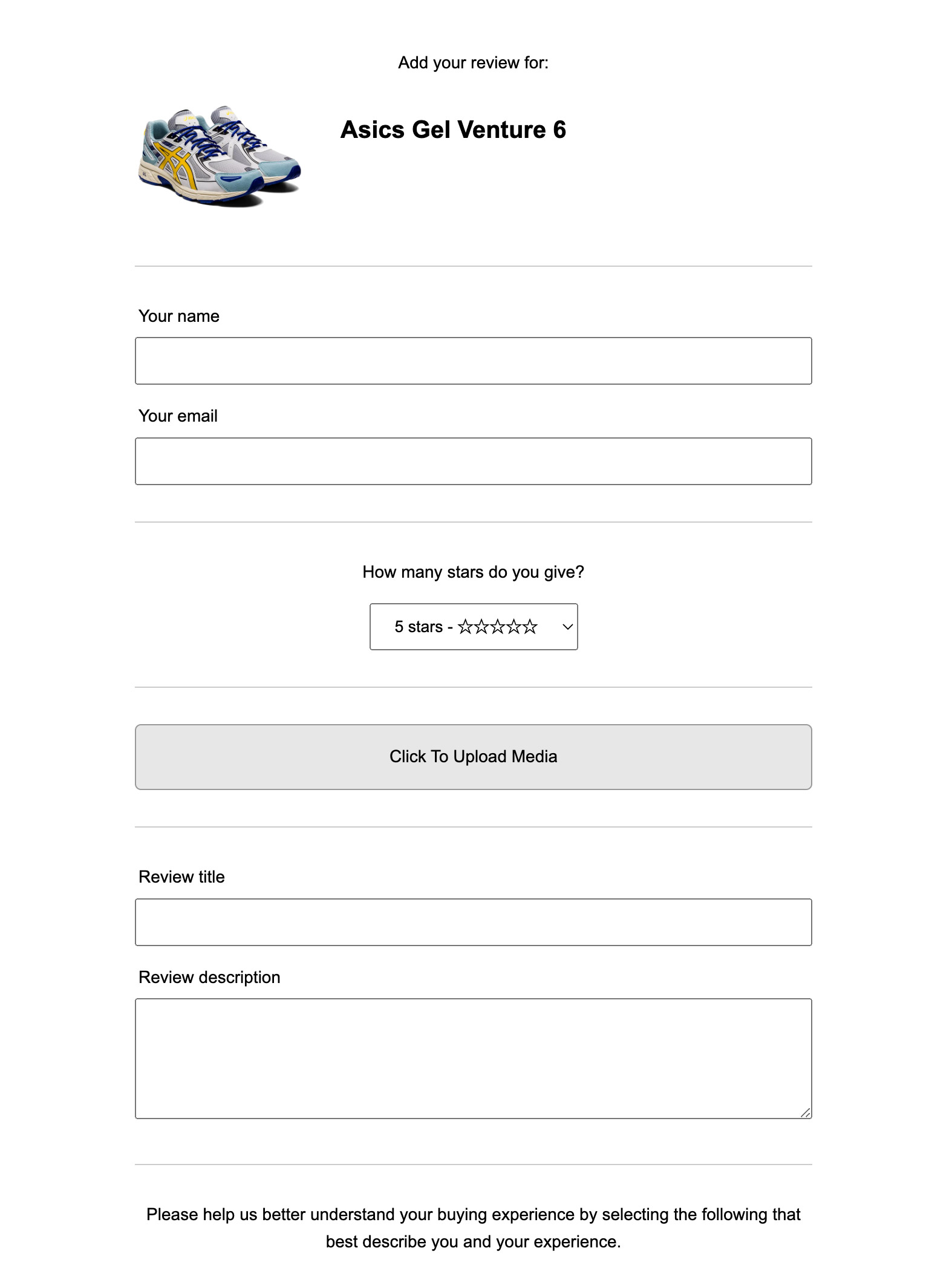 All of our reviews and questions are captured on unique external pages for Shopify. This method has many advantages to inline forms: