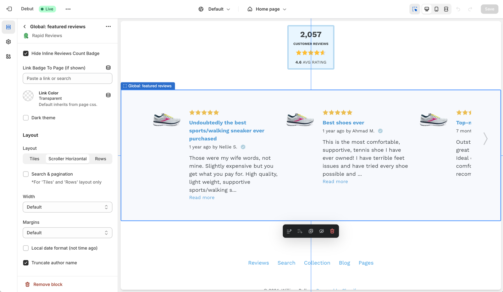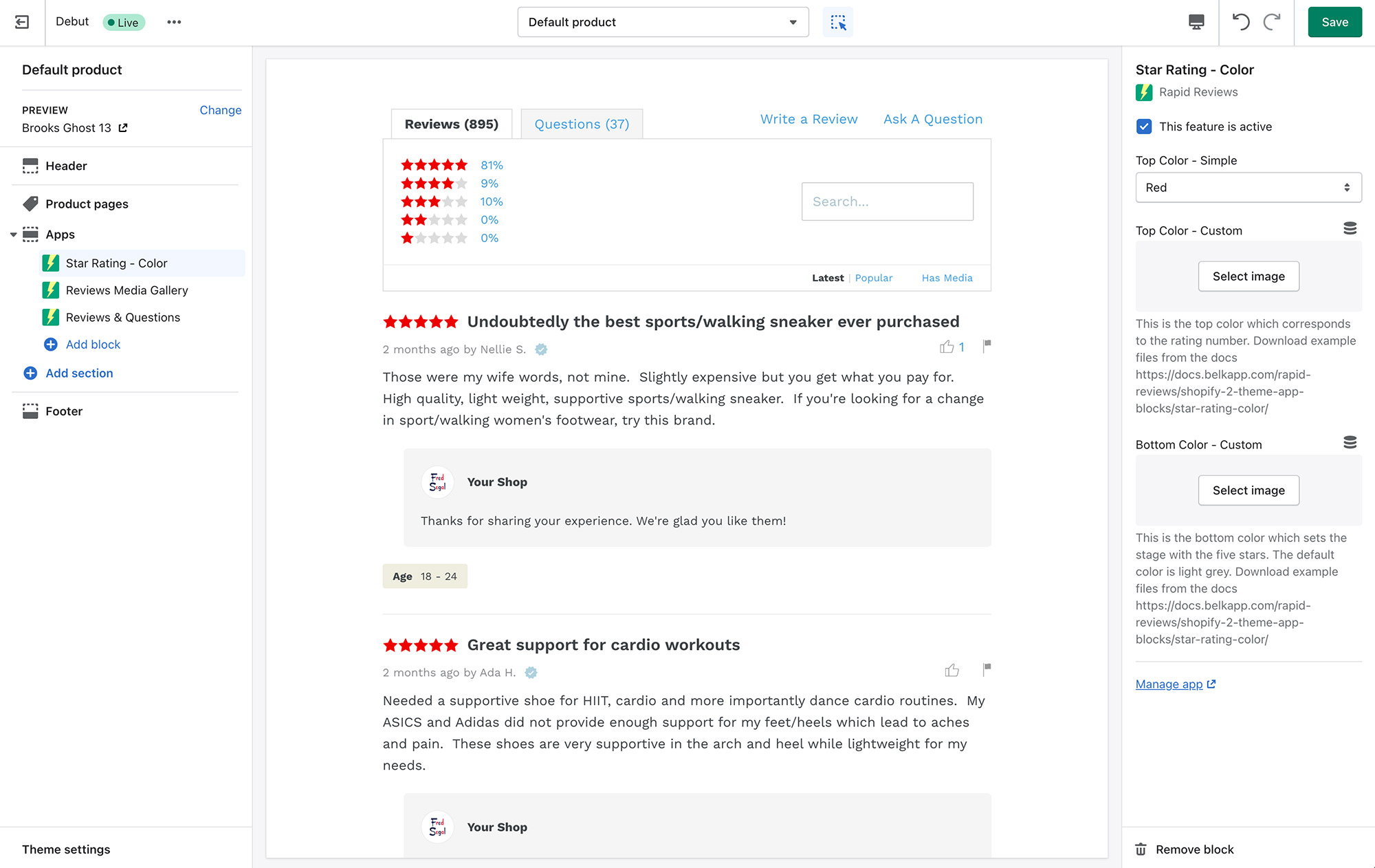 Rapid Reviews offers full support for Shopify 2.0 enabled themes.