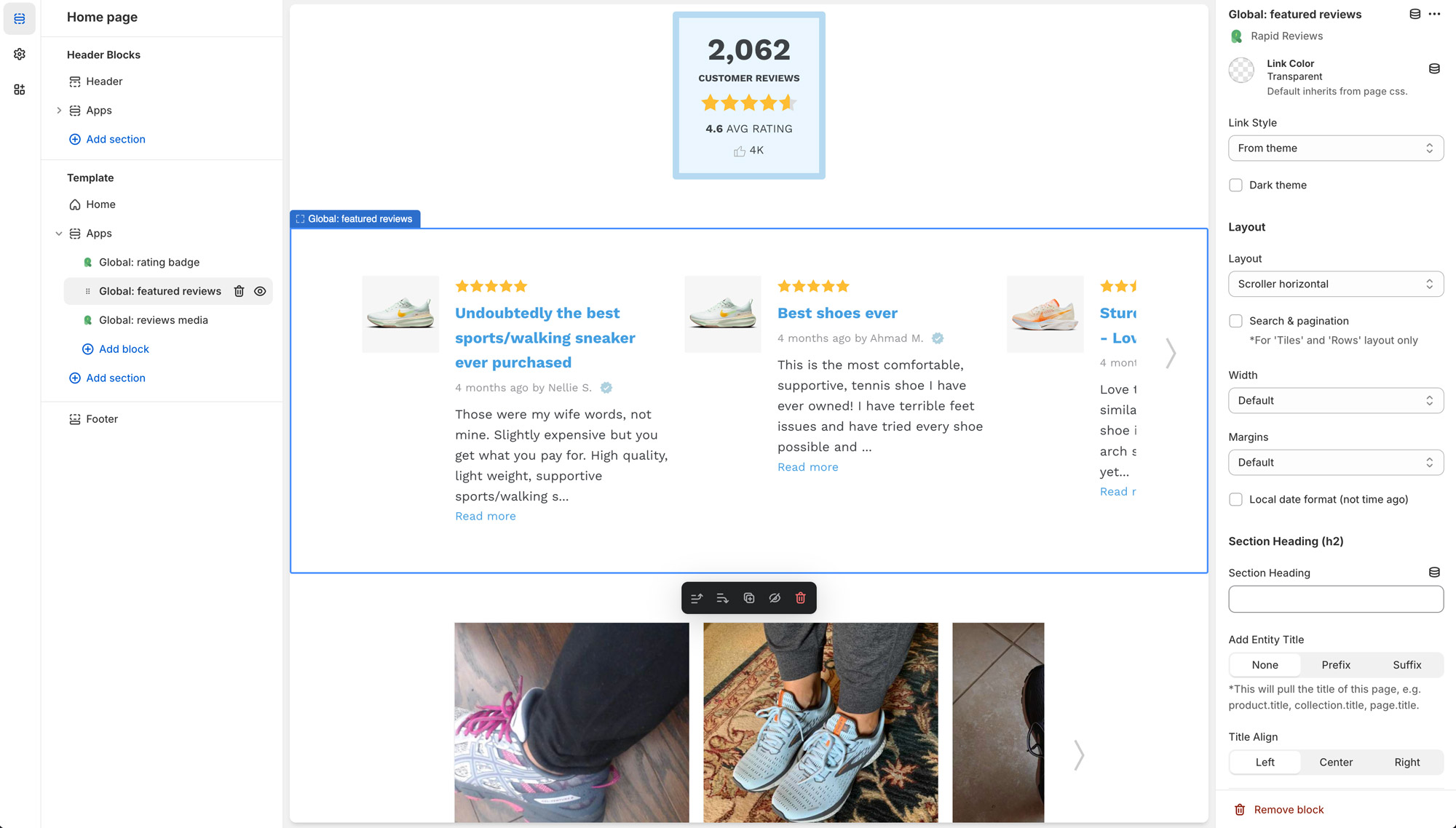 Rapid Reviews offers full support for Shopify 2.0 enabled themes. This allows you to add section blocks to any compatible theme.